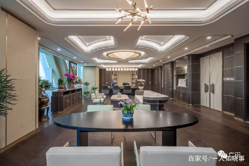 穿过高层旋转扶梯,我们来到高层办公区,这里尽显低调。装饰风格以欧式风格为主,白色正门上镶嵌着着花瓣线条,与幕墙线条相互呼应,空间分布均匀、配置合理,细节之处尽显工匠之心。这些都是我们看得见的部分,当然,还有看不见的部分。
