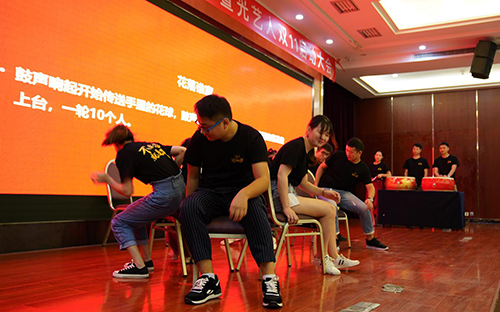 鼓声阵阵如雷响,光艺人小伙伴个个摩拳擦掌,排名前列轮游戏抢椅子,光艺人员工意气风发,指令下,椅子在不到1秒的时间里被攻占。