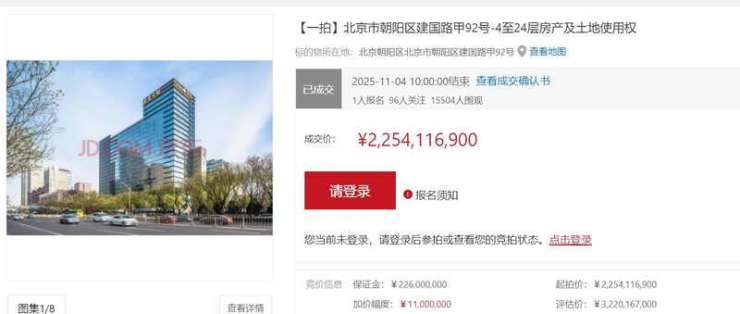 据京东资产交易平台显示,11月4日,位于朝阳区建国路的世茂大厦拍卖落槌,成交价为22.54亿元,买家为知名的药企扬子江药业集团旗下的北京扬子江置业有限公司。