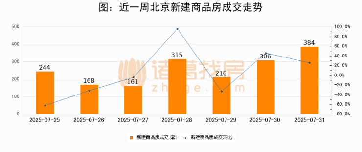 【北京成交日报】07月31日新房成交384套、二手房811套;涨价房源81套