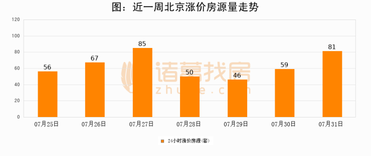 根据诸葛找房数据显示,北京24小时涨价房源量为81套,较07月30日增加22套,环比上涨37.3%。与此同时,涨价房源占比小幅扩大,业主信心有所提升。