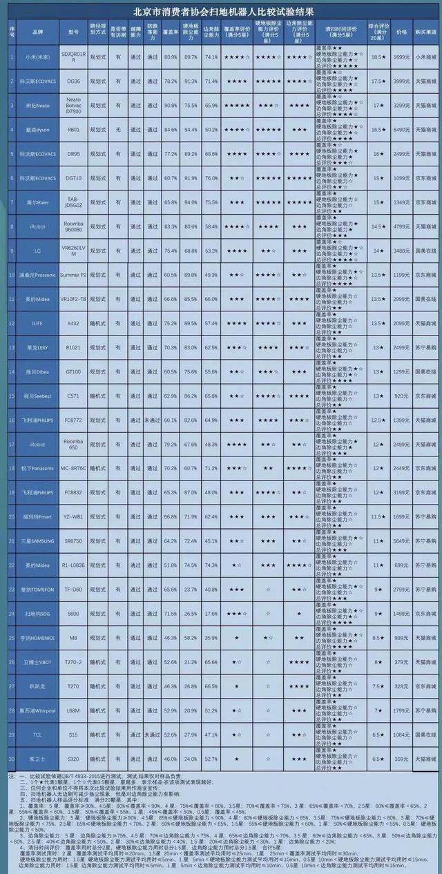 北京消协发布了详细的扫地机器人评测结果。图片源自北京消协公众号