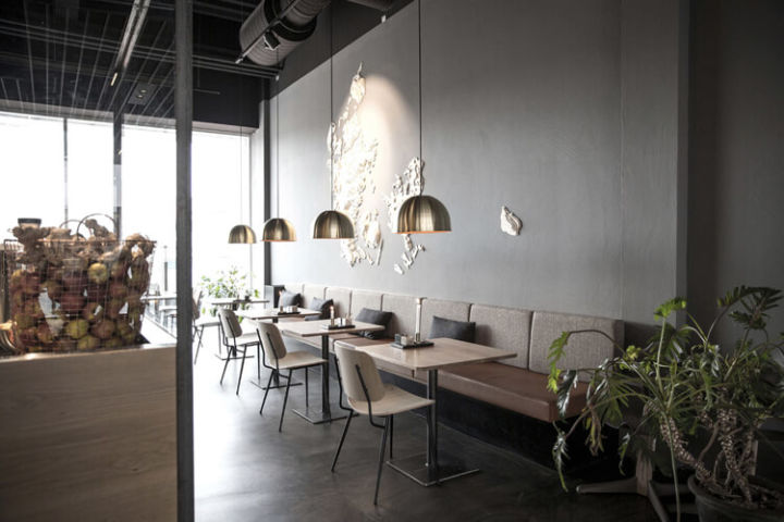 受到该品牌崇尚简单生活方式的启发,设计团队为餐厅创造了一个诱人的乡村环境,并使用皮革、木材和羊毛等原材料,再通过柔和的色调,营造出一种轻松的氛围。