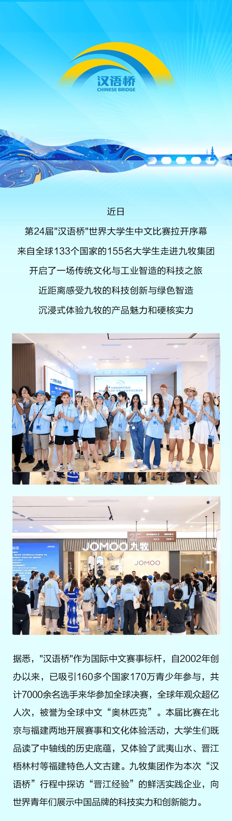 来自全球133个国家!“汉语桥”世界大学生走进九牧!