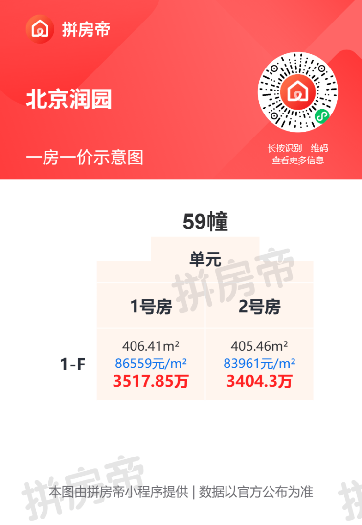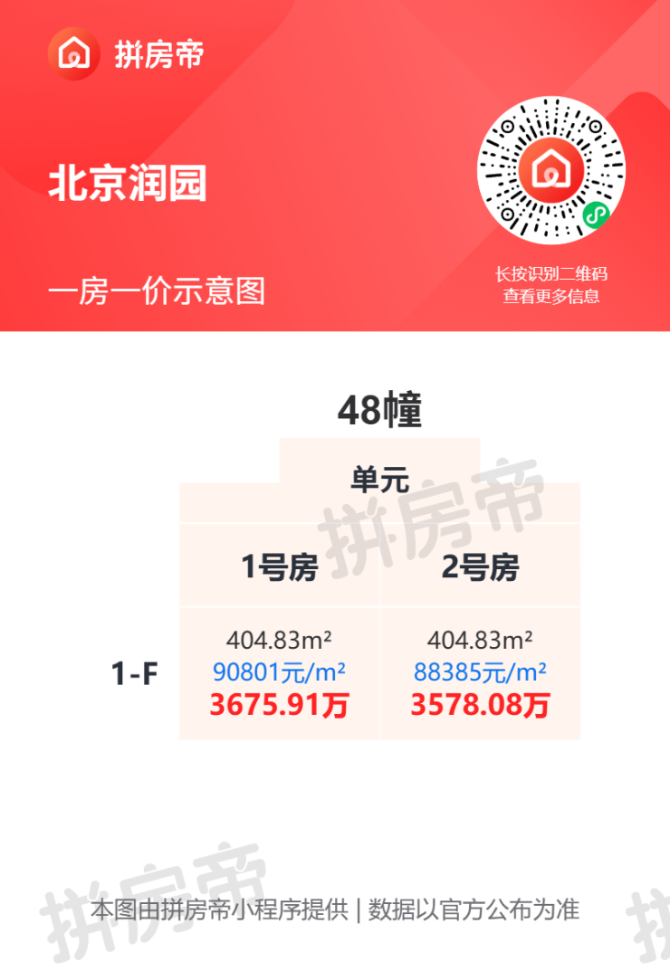 不同户型之间的单价差异明显,具体房价可参考一房一价表