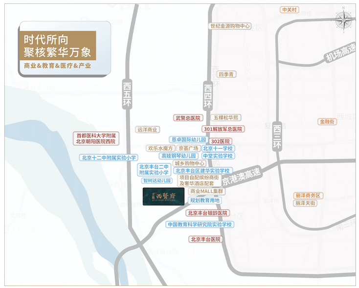 此外,大瓦窑板块内除城乡购物中心、京荟购物中心、中贡广场、世纪华联超市等商业可以满足日常需求外,地铁向西一站地则是今年已经开工的合生汇购物中心。搭配北京丰台二中附属实验小学、北京十二中附属实验小学、北京丰台医院、301解放军总医院等醇熟配套——适应全家庭生长周期的多重生活场景,正以京能西贤府为圆心铺陈开来。