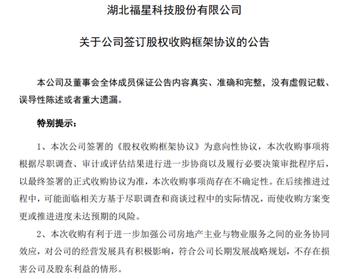 福星股份表示,本次收购有利于进一步加强公司房地产主业与物业服务之间的业务协同效应,对公司的经营发展具有积极影响,符合公司长期发展战略规划,不存在损害公司及股东利益的情形。
