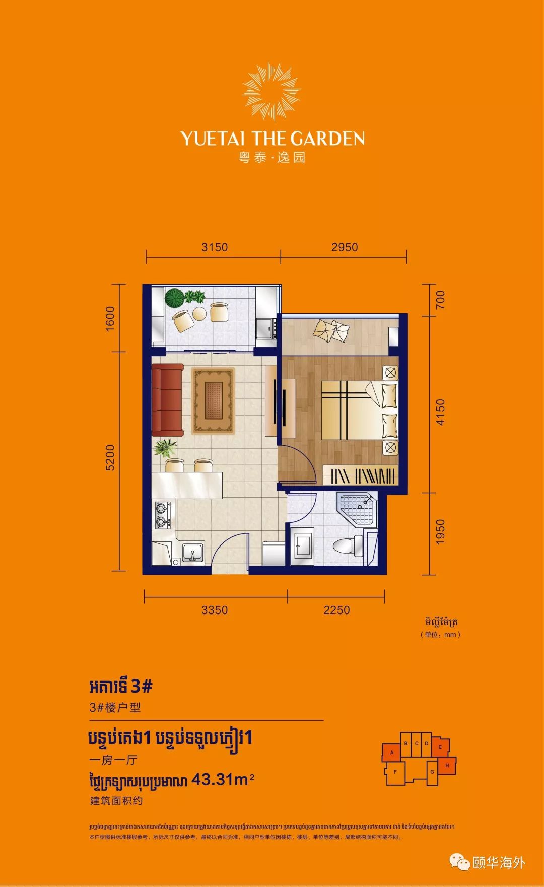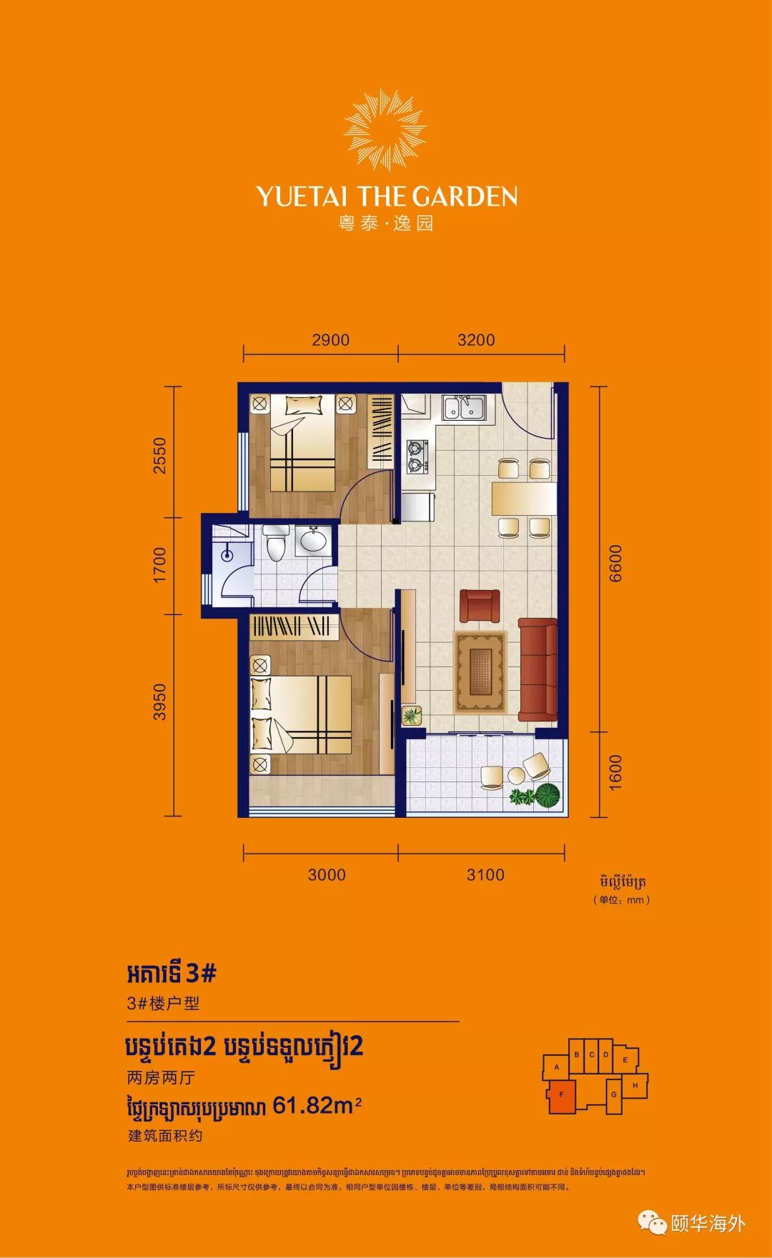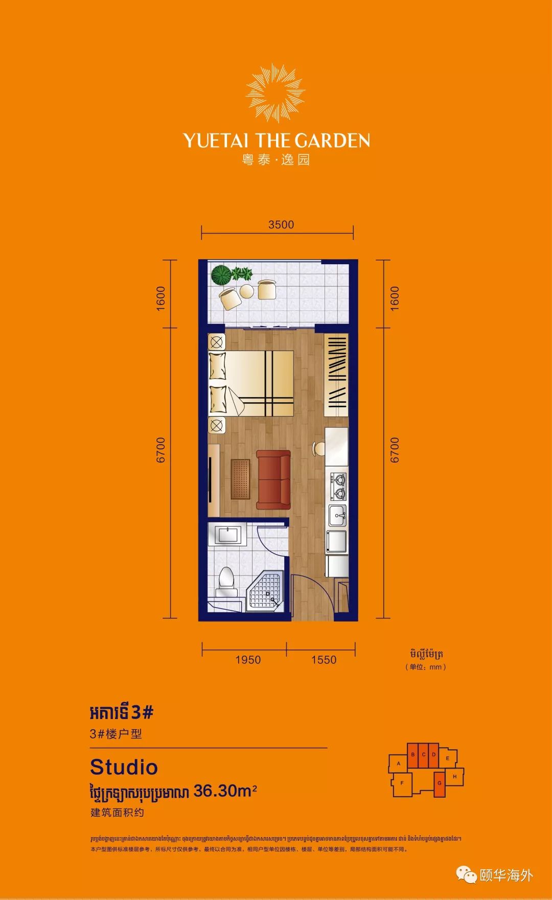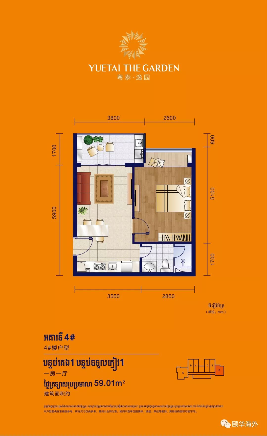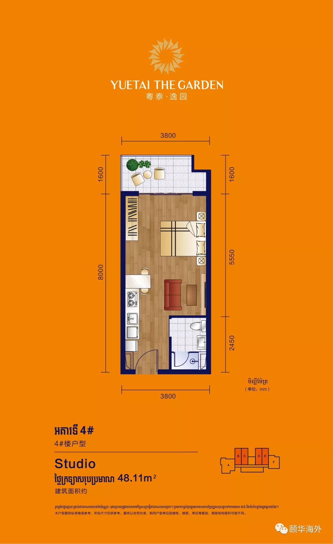 户型说明:35-48㎡的精致Studio、43-59㎡的舒适1bedroom、61-82㎡的舒适2bedroom