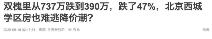 西城区双槐里一套43㎡的房子,2023年2月卖了737万,今年8月390万就成交了,算下来跌了47%!
