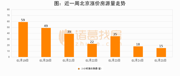根据诸葛找房数据显示,北京24小时涨价房源量为15套,较01月24日减少3套,环比下降16.7%。与此同时,涨价房源占比小幅回落,对于购房者来说是一个入市窗口期,购房者可抓住时机入市。