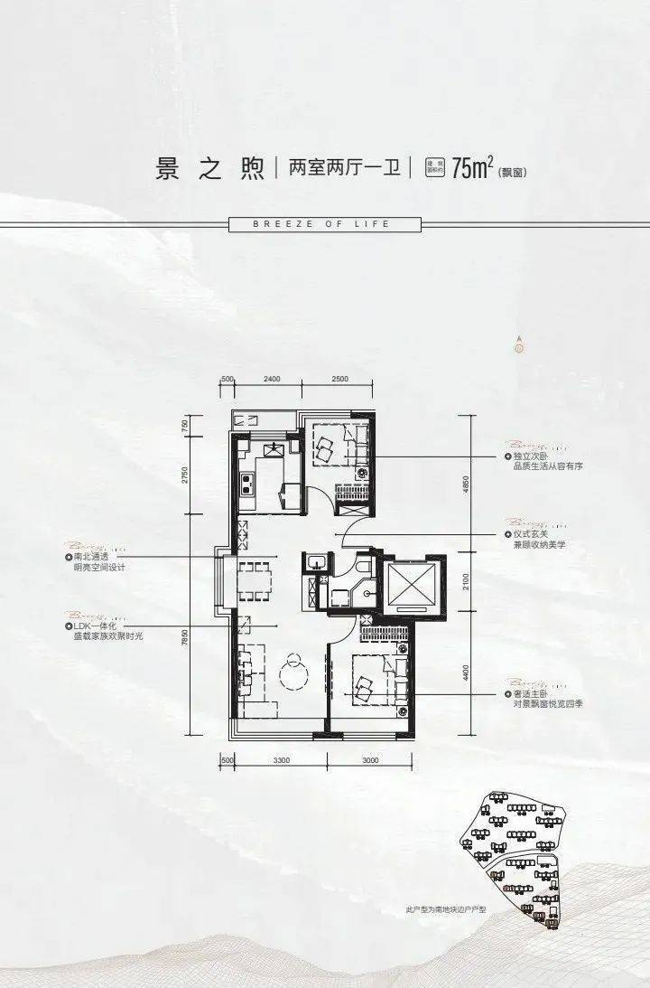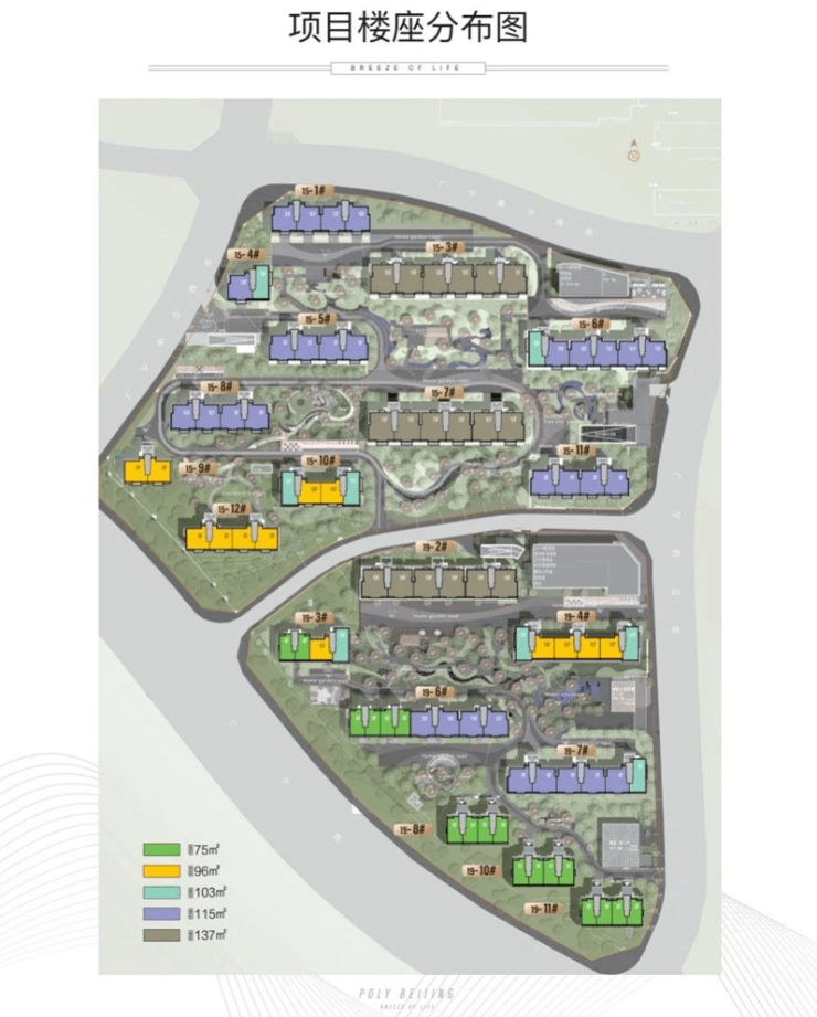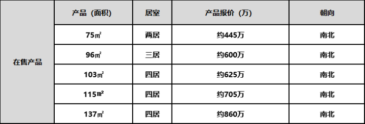 面积段为75-137平米二至四居:75平两居、96-103-115平三居、137平四居,得房率最高能到84.4%。
