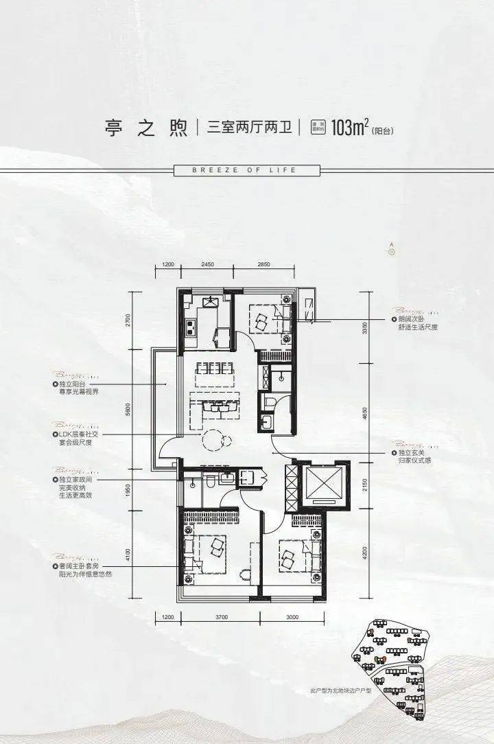 96和115平三居,其实在保利的产品中很常见,因为经的起市场的检验,都很方正,三面宽朝南,且有大阳台设计,动线都很流畅。熙悦雲上、保利锦上、和光煦境都有类似的户型。