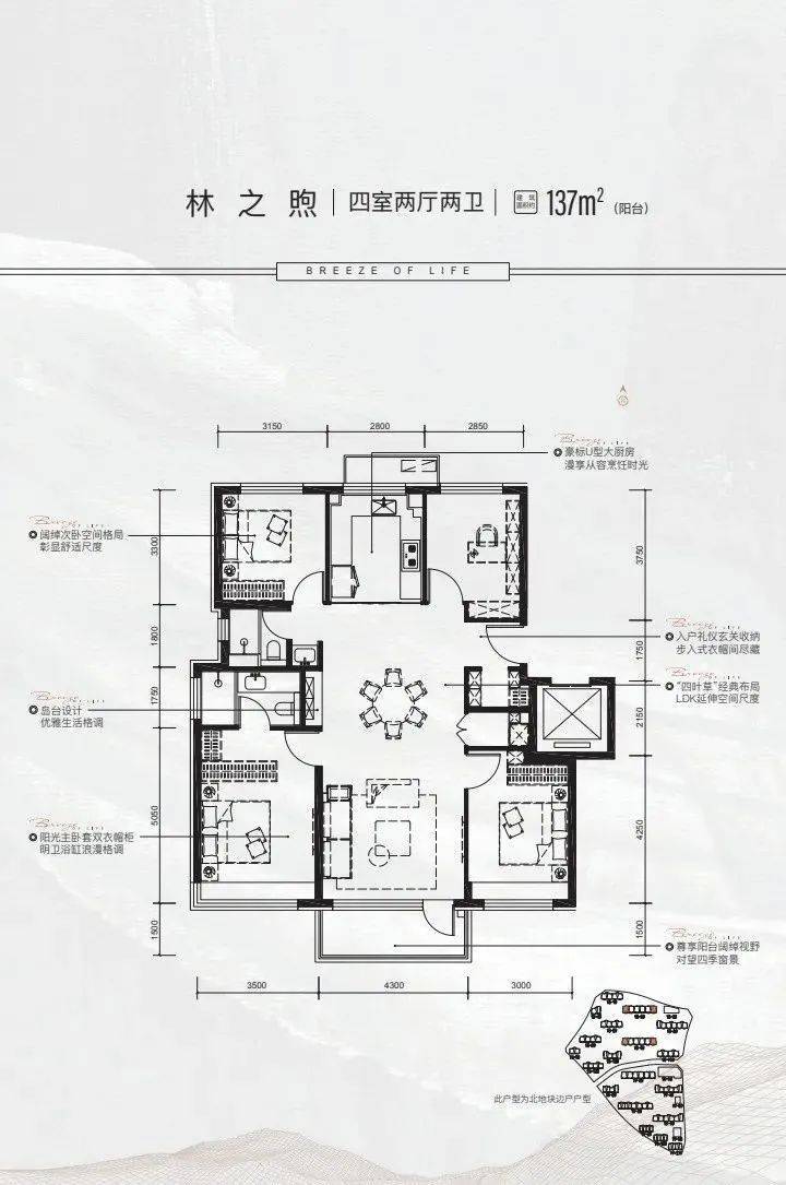 137平四居,已经将户型做到了满分。