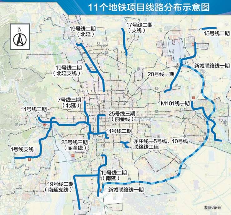 这些项目包括1号线支线、7号线三期(北延)、11号线二期、15号线二期、17号线二期(支线)、19号线二期、20号线一期、25号线三期(丽金线)、M101线一期、S6线(新城联络线)一期以及亦庄线-5号线、10号线联络线工程。此次公示中,第三期建设规划图亮相。