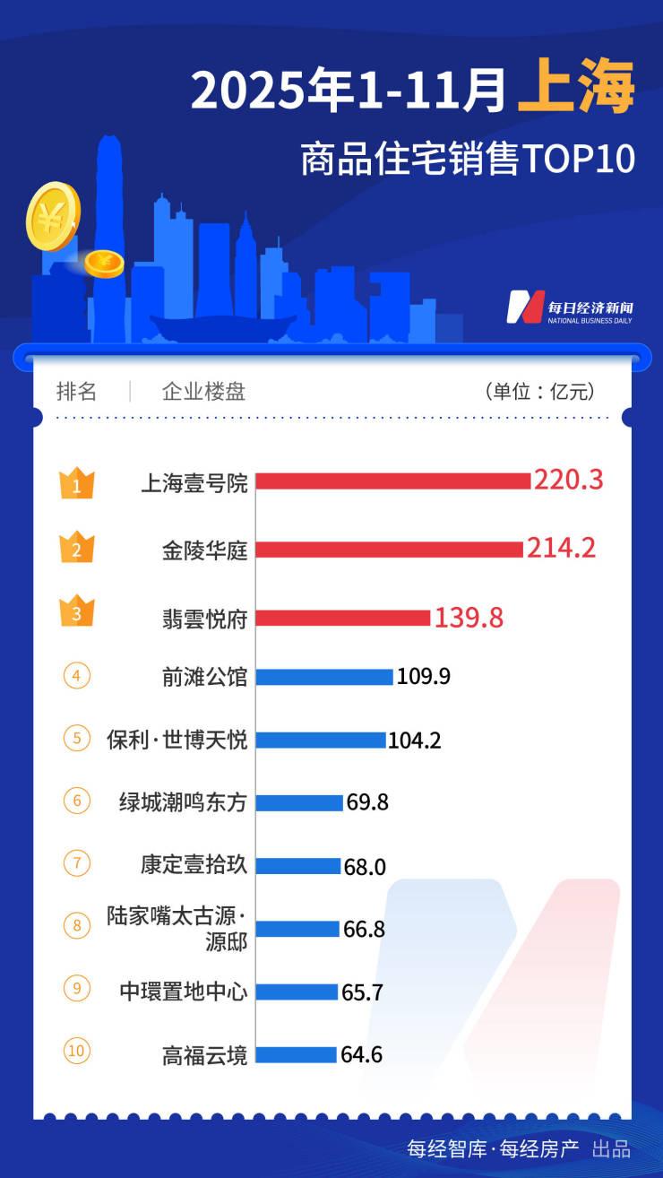 据中指研究院统计,1—11月,上海TOP10项目累计销售额合计1123.3亿元,继续断崖式领跑全国。