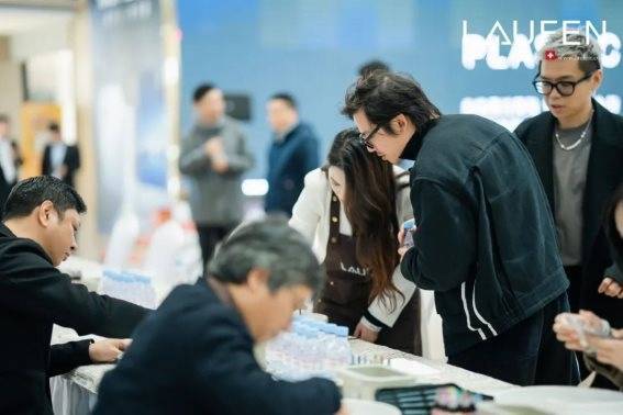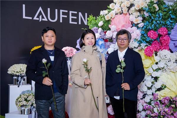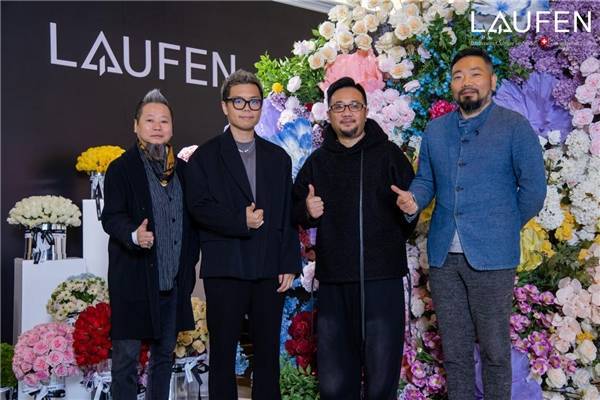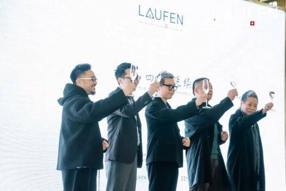 宁波市室内设计师协会会长、W·DA王践设计师事务所创始人/总设计师 王践先生、劳芬中国区市场部经理 张炳南先生、温州鸿联集团运营总经理 唐见仁先生、中国室内装饰协会设计专委会委员、温州室内设计师协会副会长 黄志勋先生、聚向传媒总裁 赵雪松先生一起举杯,共庆瑞士劳芬“新世代艺术空间”温州展厅暨艺术装置展圆满启幕!