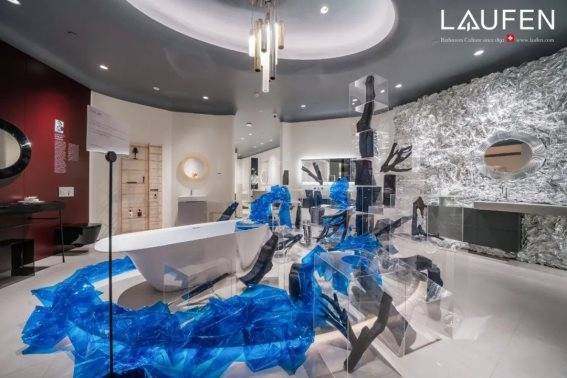 装置空间以创意精致的艺术作品重新定义设计的意义,让可持续环保理念成为空间元素的主角,展现了瑞士劳芬集艺术时尚与环保为一体的前瞻创新品牌个性。