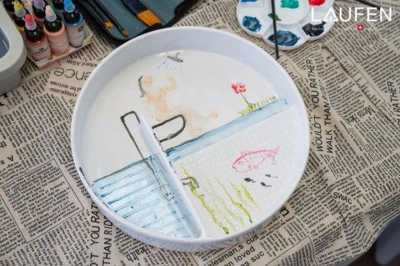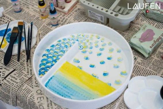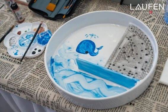 设计师通过现场生动有趣的互动艺术体验:DIY手绘瑞士劳芬蓝钻置物盆,深切体会到瑞士劳芬将美学与艺术相融的潮流魅力。