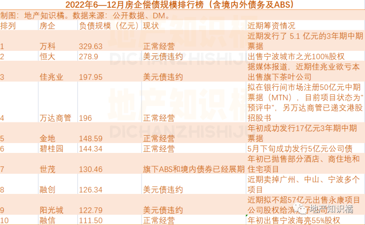 看了下6-12月,房企偿债规模排行榜的前十基本都是大家耳熟能详的头部房企。