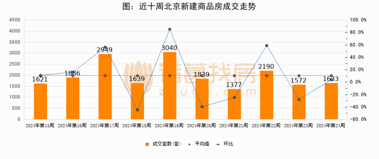 【北京成交周报】第24周新房成交1633套,二手房3348套,涨价房源1363套