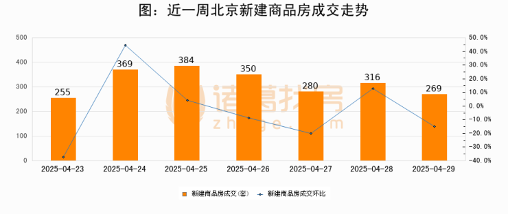 【北京成交日报】04月29日新房成交269套、二手房766套;涨价房源59套