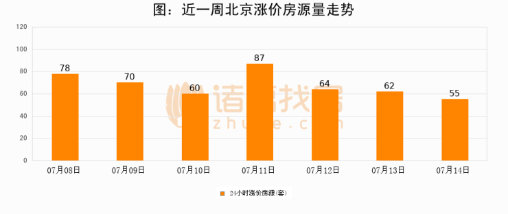 根据诸葛找房数据显示,北京24小时涨价房源量为55套,较07月13日减少7套,环比下降11.3%。与此同时,涨价房源占比小幅回落,对于购房者来说是一个入市窗口期,购房者可抓住时机入市。