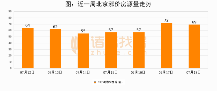根据诸葛找房数据显示,北京24小时涨价房源量为69套,较07月17日减少3套,环比下降4.2%。与此同时,涨价房源占比小幅回落,对于购房者来说是一个入市窗口期,购房者可抓住时机入市。