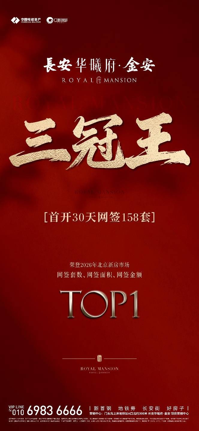 从66分钟清盘的开盘炸场,到30天网签158套的三冠加冕,长安华曦府·金安用一系列硬核数据,打破了逆市楼市的沉寂。它不仅是一个现象级红盘,更是一套逆市操盘逻辑的成功实践,是央企责任与专业能力的集中体现。2026年北京楼市的开局之战,长安华曦府·金安用实力证明:唯有坚守价值、精准施策、专业赋能,才能穿越市场周期,成为真正的行业标杆。而这份热销传奇,显然才刚刚开始。