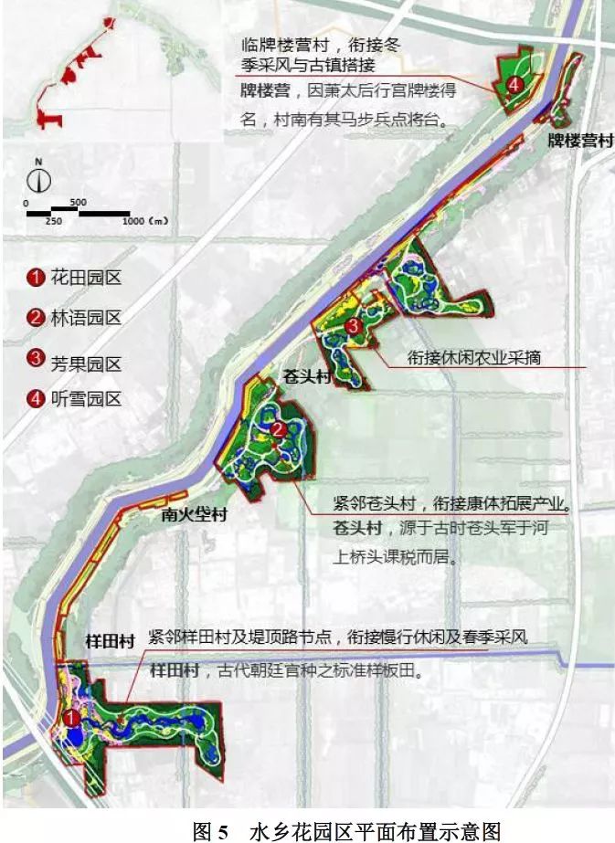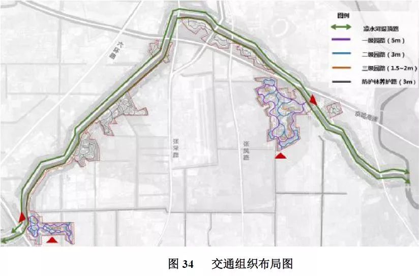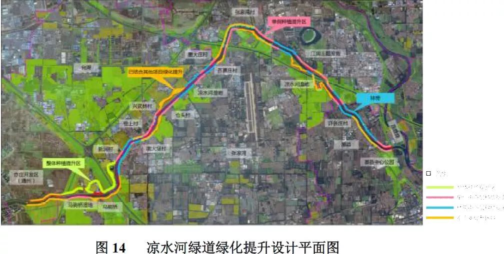 凉水河绿道总长50.8 公里,包括新建骑行绿道、新建步行绿道及借道三种类型。沿途村庄如图,可参考本文开头凉水河湿地部分。