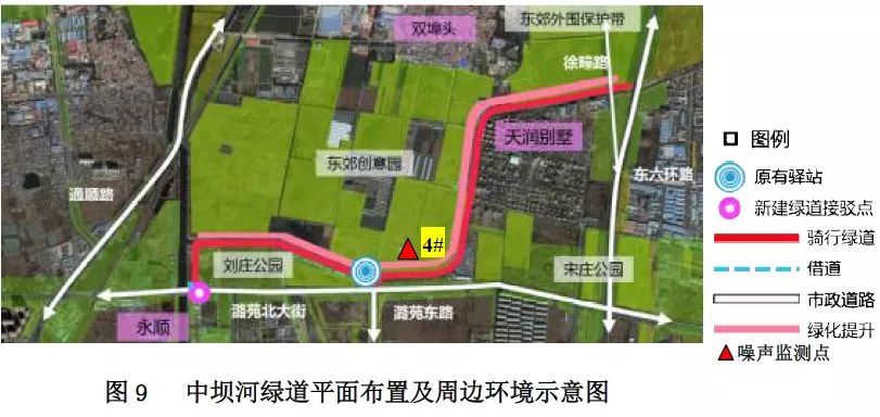 东六环西侧绿道总长8.4 公里,包括新建骑行绿道及借道两种类型。