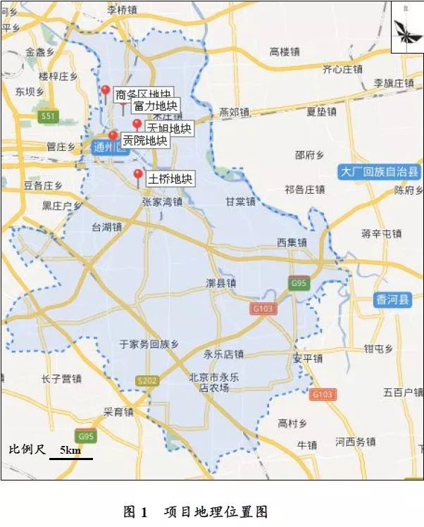 本地块位于京哈高速公路北侧,属于规划通州新城155 平方公里范围内。与凉水河绿化中通运天下、抚绿观荷两节点相邻。临近张凤路、张采路,地块被多条交通线路切割,用地较复杂。