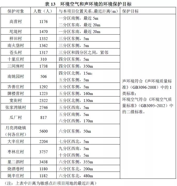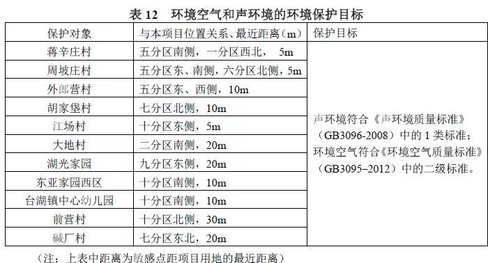 项目周边多为厂房,保护目标包括蒋辛庄、周坡庄、外郎营、胡家垡、江场、大地、湖光家园、东亚家园西区、台湖镇中心幼儿园、前营村、碱厂村。涉及的村庄部分已搬迁。