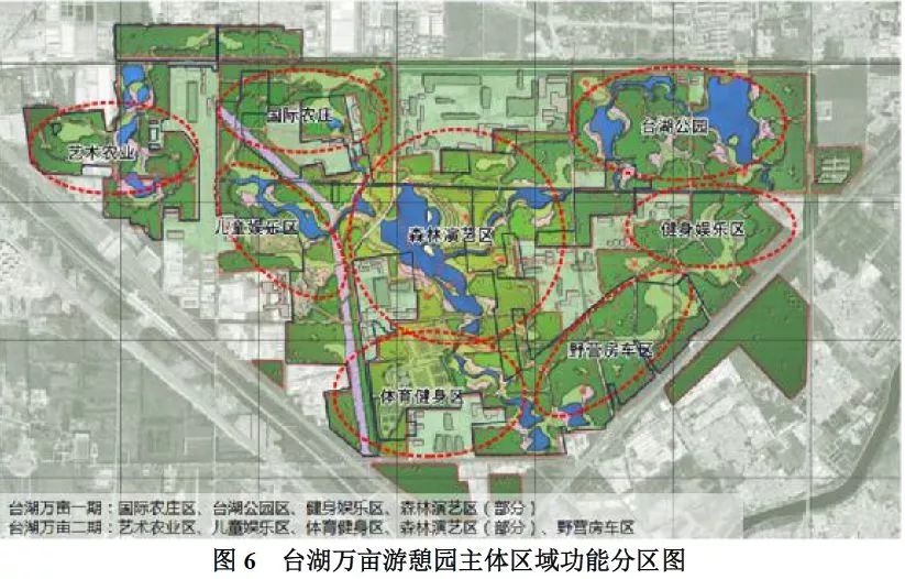 台湖万亩游憩园一期规划建设5005.1亩,二期规划实施约9680 亩。主体区域共规划八大分区:艺术农业区、国际农庄区、儿童娱乐区、森林演艺区、体育健身区、台湖公园区、健身娱乐区、野营房车区等。