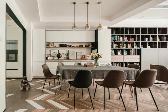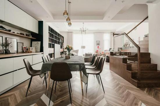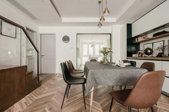 设计师调整了原来楼梯的上楼位置后,将空出来的区域变成了现在的餐厅。