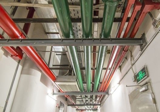 地下室的设备用房较多,是机电工程的核心区域,大部分的机房都设置在地下室,如:制冷机房、换热站、高低压配电房、锅炉房、水泵房、发电机房及消防排烟机房等。海汇盛景项目总经理赵忠达先生说:“地下室管道口径大,交叉点较多,所以在进行管线综合排布的时尽可能的做到利用共用支架的形式,以确保安装后的有效空间和美观性”。