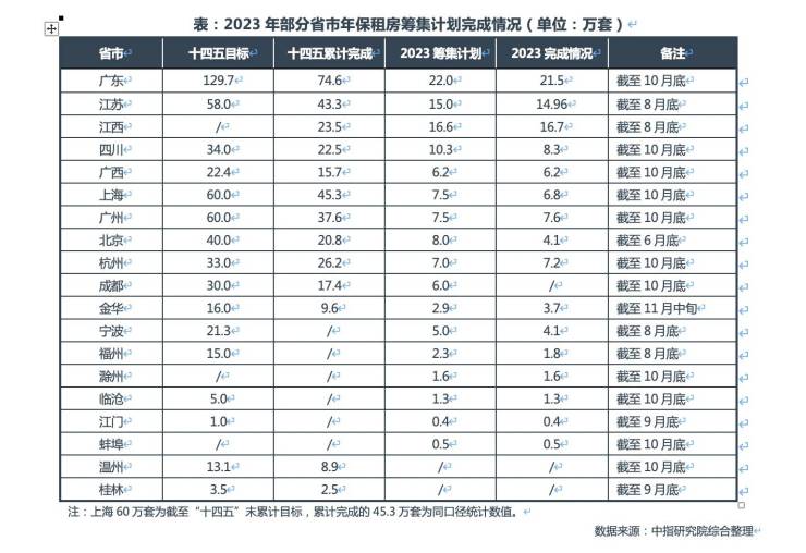 截至今年10月底,广东已筹集21.5万套(间),目标完成率为97.7%,上海筹集6.8万套(间),目标完成率为90.7%,接近完成年内任务。