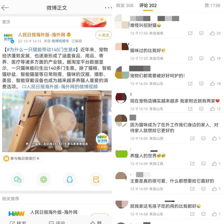 在社交网络上,吸猫、晒狗的内容也越来越多,带给人们很强的“治愈感”。近日,微博话题#为什么一只猫能带动140门生意#也引发了网友的热烈讨论,网友对此表示“难怪叫招财猫!”“就我家这毛孩子吃得用得比我好。”萌宠已经成为新的流量密码,消费领域里宠物经济的热度也在节节攀升。