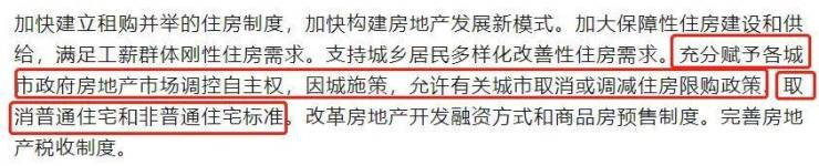 前段时间的三中全会《决定》中,关于房地产提到“允许有关城市取消或调减住房限购政策,取消普通住宅和非普通住宅标准”。