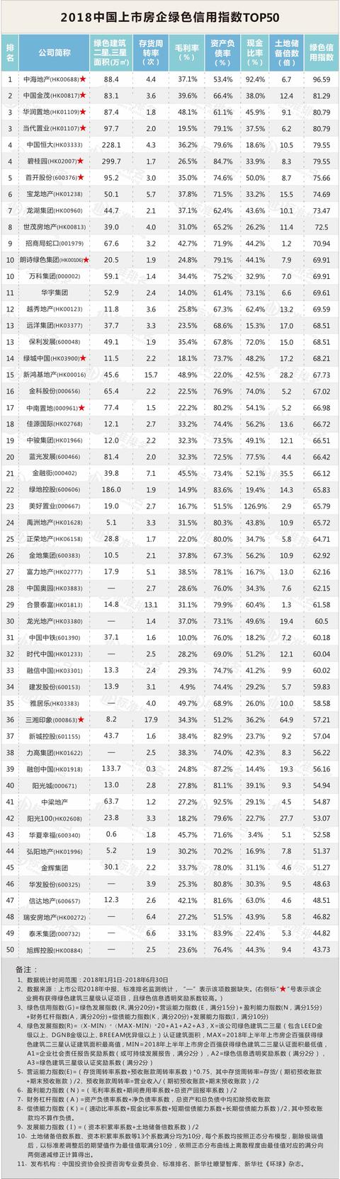 在新华社《环球》杂志与中国投资协会投资咨询专业委员会、标准排名联合出品的《绿色信用“筑基”绿建时代”2018中国上市房企绿色信用指数TOP50报告》中,中国中铁以60.18的综合得分,位列第31位。