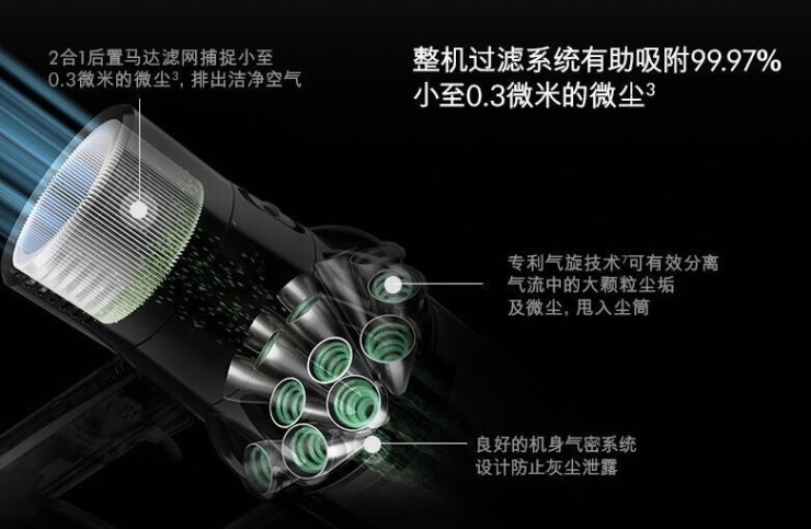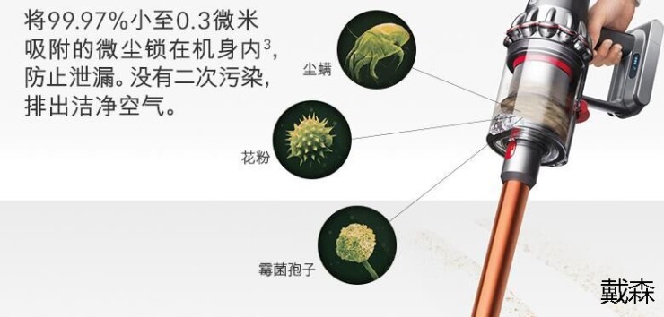 前面我有说,我们家原来的那个吸尘器老是会喷尘,所以我特别的关注了一下各个吸尘器在这方面的设计。但是比较令我失望的是,除了戴森,其他的三款吸尘器居然完全没有说到关于二次污染的问题。看来,还是戴森更为用户的实际情况考虑。
