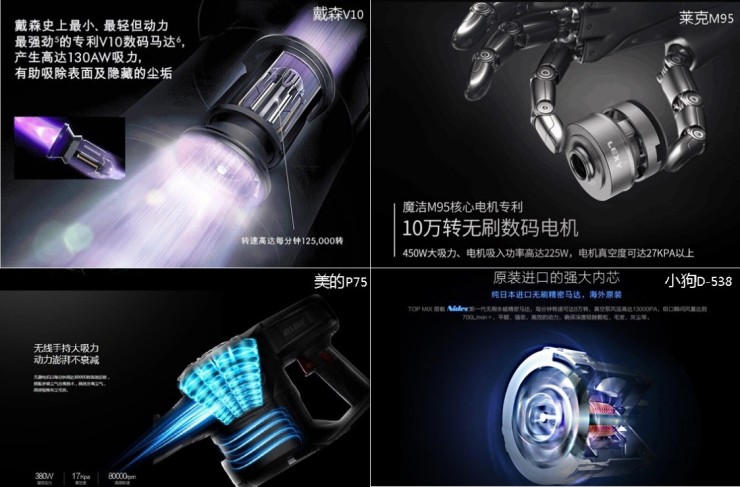 4,小狗使用的是无刷精密马达,每分钟的转速为80,000转,真空泵风压达13KPA,与美的相近。