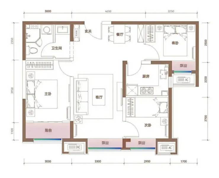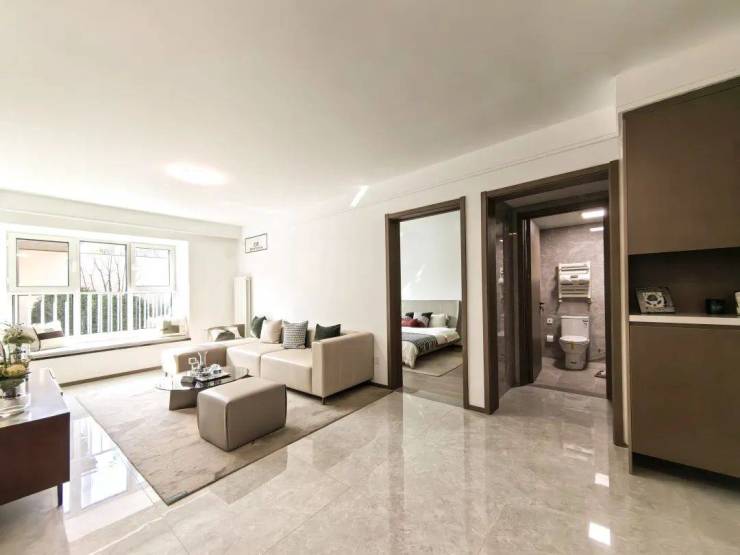并且可以看到客厅面宽达3.3米,整个公共区域非常开敞,没有一点面积浪费,大家可以结合上方89平样板间实景图感受一下。