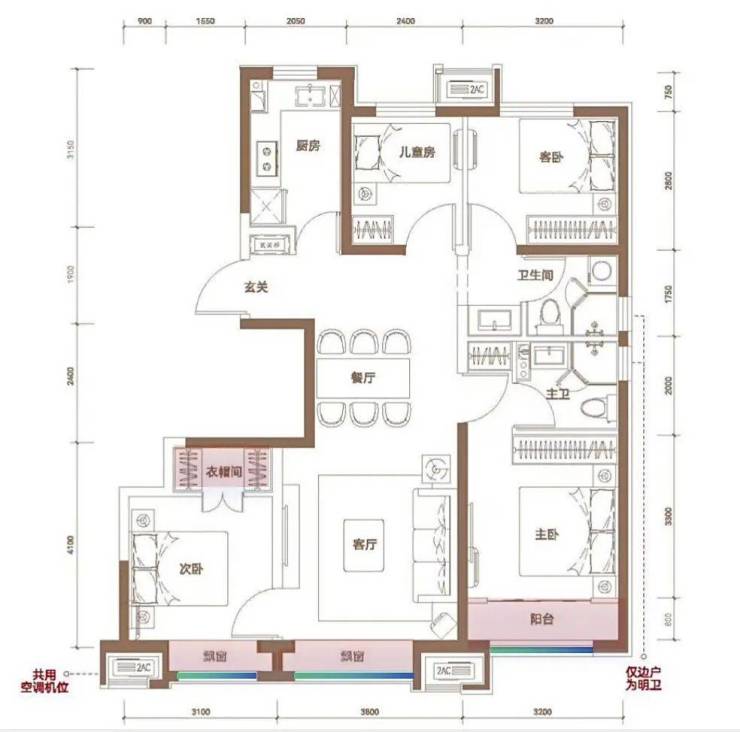 这个户型南向次卧也做了衣帽间,并且是两梯两户,改善特质很明显~