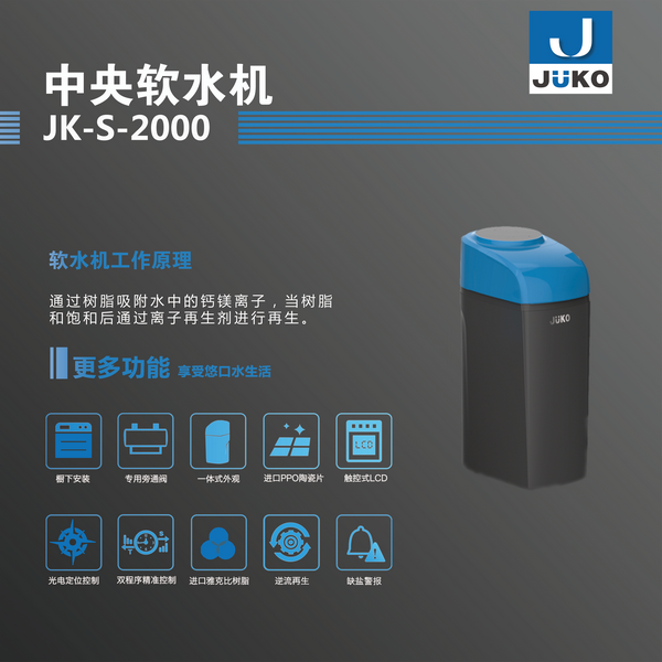 悠口JK-S-2000型中央软水机的流量适中,所以也是较受用户青睐的型号,一般用户都会选择JK-S-2000+ JK-S-2000配套,同时净化和软化家中的水质。