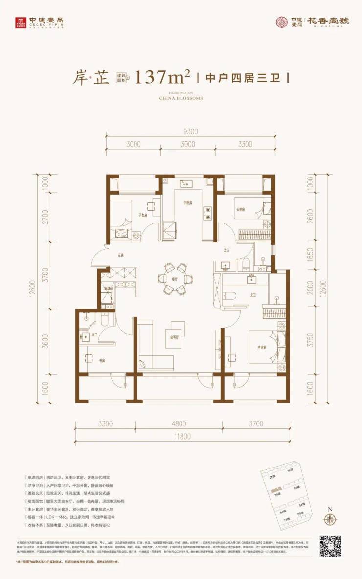建面约137㎡四室两厅三卫加上拓展空间,得房率提高到惊人的约95%!