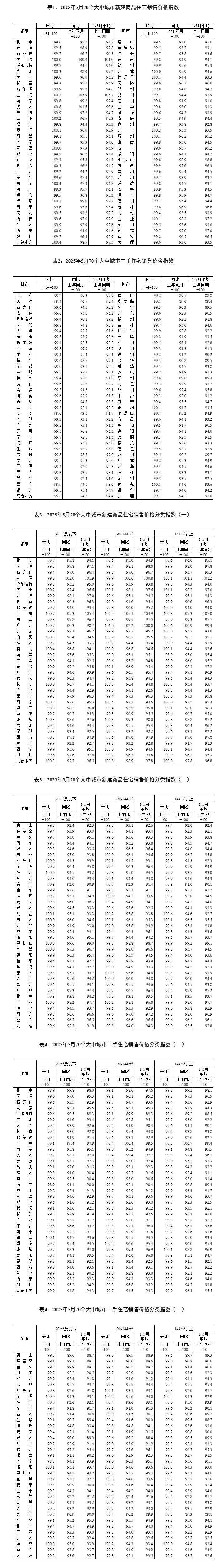 2025年5月份,70个大中城市中,各线城市商品住宅销售价格环比下降,同比降幅继续收窄。