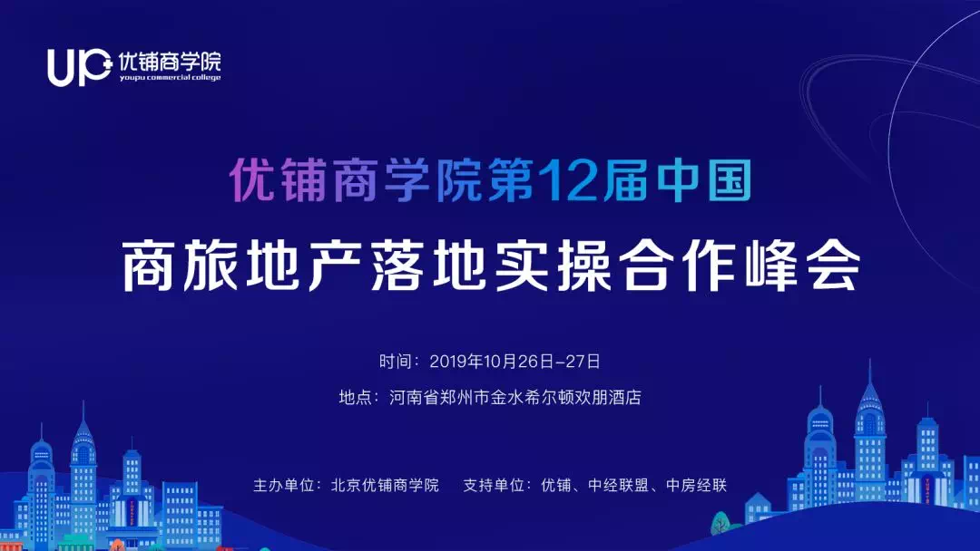2019年10月26日-27日,优铺商学院第12届中国商旅文地产落地实操合作峰会走进郑州,直击商旅地产营销痛点,分享成功营销案例,助力三四线城市商旅地产早日盈利。并成立中经联盟河南分盟,携手行业一流专家,直击房地产行业痛点,分享行业经验。