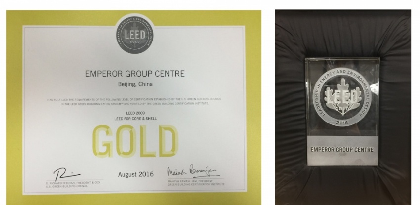 英皇集团中心早前已获得由美国绿色建筑协会颁发的LEED金级认证。项目以绿色可持续为开发宗旨,推行绿色建筑标准,打造绿色环保节能建筑。通过设计精美的园林,选取四季树种,营造高低错落的园林景观,充分利用水资源,达到高效节水的效果。纵观整个项目外观,采用国际先进的LOW-E玻璃幕墙,单块尺寸达到长3.25米,宽2.4米通透视野,将长安街繁华景象尽收眼底。同时,LOW-E玻璃幕墙亦能有效阻隔室外紫外线,保持室内温度。项目在室内采用VAV新风空调系统,配置中效防静电过滤系统,有效过滤掉室内灰尘气体。项目设计标准层净高约3.1米,无柱敞开设计,引领办公新风尚,国际化办公标准。英皇集团中心通过多项与工作、生活息息相关的环保举措,将绿色建筑的宗旨贯穿其中,在能源节约、保护环境、减少污染等方面均作出杰出贡献。