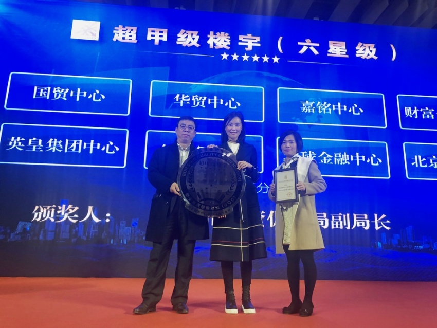 近日,英皇集团中心受邀出席于10月30曰举行的北京 CBD楼宇品质认定暨CBD楼宇联盟成立大会,并接受“六星超甲级楼宇”称号的授牌表彰。英皇集团中心的优秀楼宇管理员也获得“2018年北京CBD楼宇金牌管理员”的认证表彰。