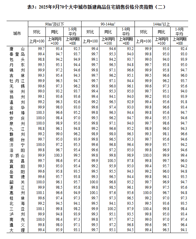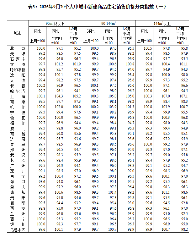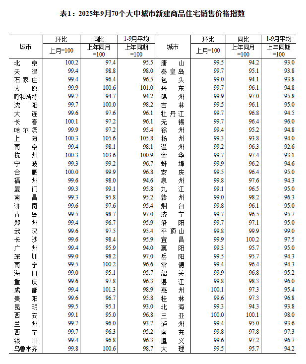 ——国家统计局城市司首席统计师王中华解读2025年9月份商品住宅销售价格变动情况统计数据